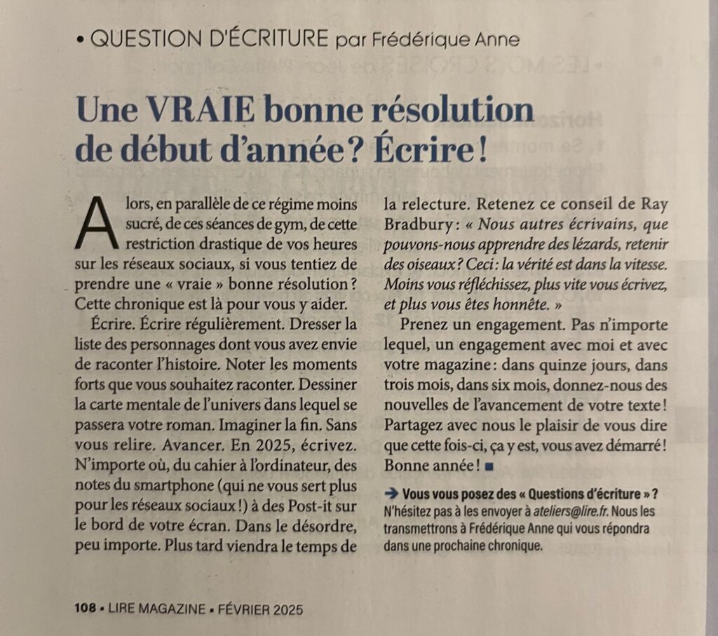 En début d’année, j’invitais les lecteurs de LIRE à prendre la bonne résolution d’écrire. Beaucoup m’ont suivie. Et 2025 a été une année très productive !